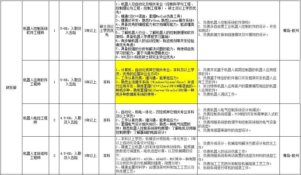研發(fā)部:招軟件工程師6名