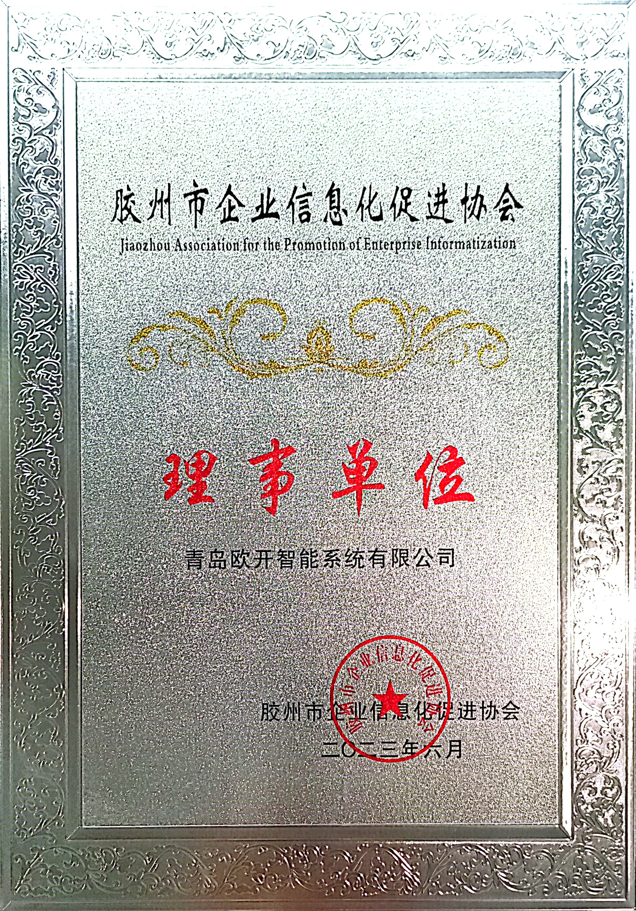 歐開(kāi)智能受邀成為膠州市企業(yè)信息化促進(jìn)協(xié)會(huì )理事單位
